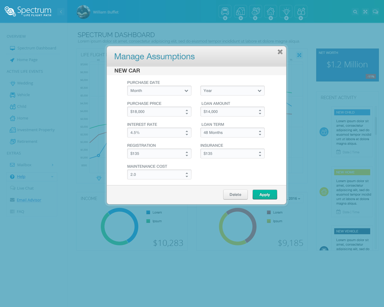 Spectrum UI/UX App Dashboard and Modals